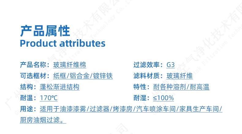 ?采用玻璃纖維以非織物方式制成,透風(fēng)量大,其空氣阻力小,對漆霧Over-spray捕塵效率佳,使用時間長。